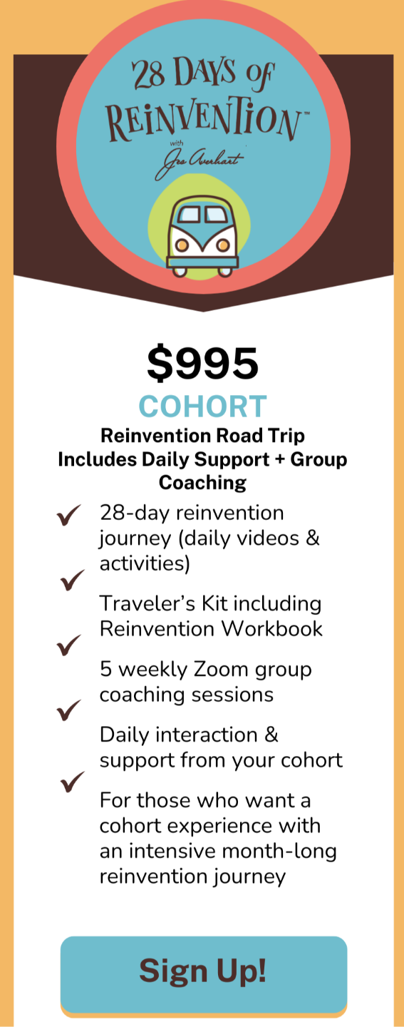 My specialty is getting women unstuck—quick, fast and in a hurry! Over the last decade, I’ve had the distinct honor of guiding women from all walks of life through their personal reinvention story. Let's get out on the road together!