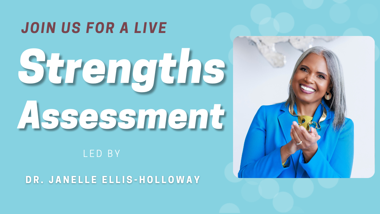 Join us on August 26th for this unique hands-on live session with Dr. Janelle Ellis-Holloway. You'll take the VIA strengths assessment ahead of time... and in our live session, Dr. Janelle will walk us all through how to interpret and leverage your assessment results.